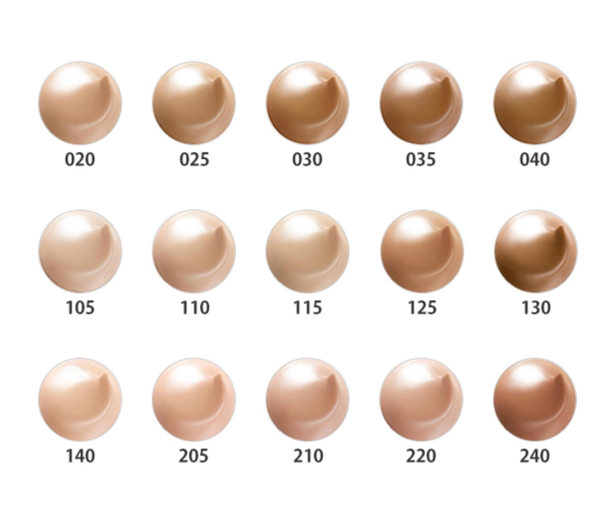 - SPF30/PA+++ shade 025, 030, 035, 040, 050, 130, 140, 155, 240, 260